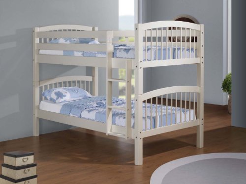 Best Value on the Web! LIMITED TIME: LEADING ONLINE SELLER of the Linon White Bunk Bed! FREE Guard and Side Rails! FREE Bunk Ladder! \ A perfect bunk bed ...It was easy to assemble. The bed is sturdy and safe ...\ (Verified Buyer) \ The beds were bought for our grandaughters over night visits. The assembly was easy the height of the top bunk is just right. And the girls loved the comfort .\ (Verified Buyer) \ I bought this for my twin girls and they love it! ...Very sturdy and easy to assemble.\ (Verified Buyer) One of our TOP SELLING Bunk Beds! This bunk bed comes in an all white finish to bring a bright feel to your child\'s room and is the perfect solution for a family with limited space. Strong pine construction and high-quality components ensure this twin over twin bunk bed is built to last. Dimensions: 42\ W x 79.5\ D x 59\ H Splits into Two Beds! The top bunk easily splits off to give you two independent beds. The Linon White Bunk Bed can take on any family! Easy Assembly 26 steel reinforcement points and two 14-piece slat kits make the Linon White Bunk Bed as sturdy as they come. With Linon\'s ready to assemble pieces, putting your bed together is greatly simplified. All you need is a single screwdriver! Included FREE: Guard Rails and Ladder Sleep soundly - the top bed features a fixed and sturdy ladder and a rail to ensure a safe navigation for your children. Safety is KING! The Linon White Bunk Bed features unsurpassed quality and safety features! It has been tested by an independent laboratory and is ASTM Certified . Linon Furniture is a proud of its commitment to child safety. Matching Case Goods Available! Customize the room by bunking the beds or keeping the